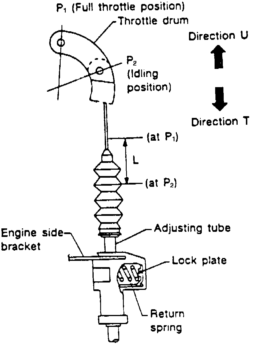 4. Adjust throttle wire stroke when throttle wire/accelerator wire is installed and adjusted. Put mark on throttle wire to aid in measuring wire stroke.