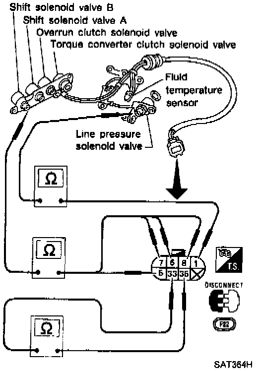 Check solenoid valve by listening for its operating sound while applying battery voltage to the terminal and ground (bracket).