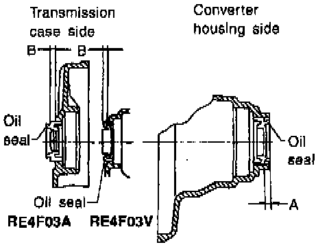 - Install oil seals so that dimensions "A" and "B" are within specifications.