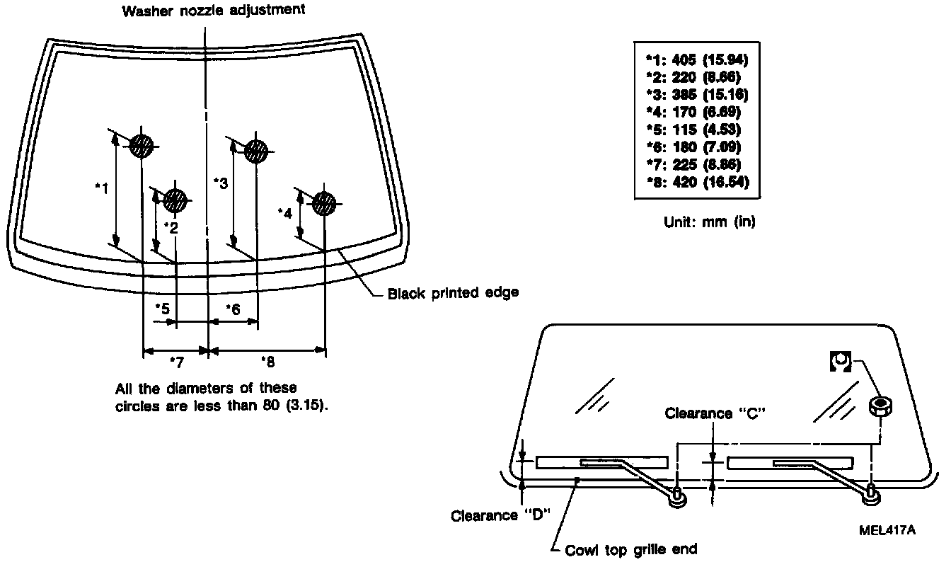4. Ensure that wiper blades stop within clearance "L1" & "L2".
