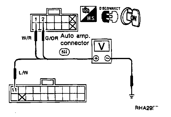 - Check body ground circuit for auto amp. with ignition switch OFF.