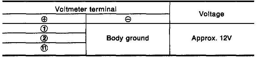 - Measure voltage across terminal No. (1), (2), (11) and body ground.