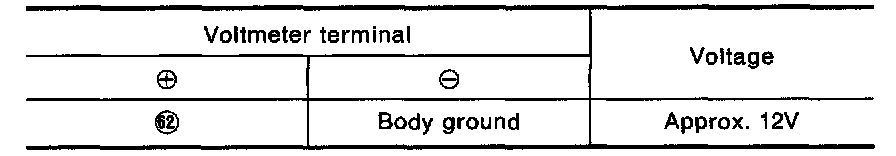 - Measure voltage across terminal No. (62) and body ground.