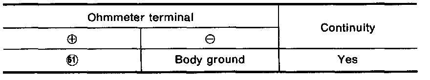 - Check for continuity between terminal No. (61) and body ground.
