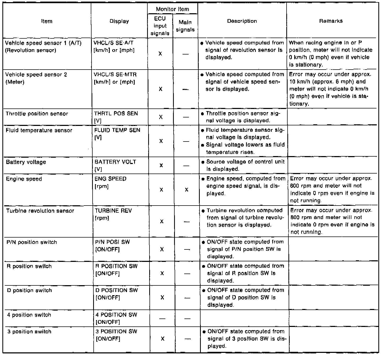 2. Shift schedule (which implies gear position) displayed on CONSULT and that indicated in Service Manual may differ slightly. This occurs because of the following reasons: