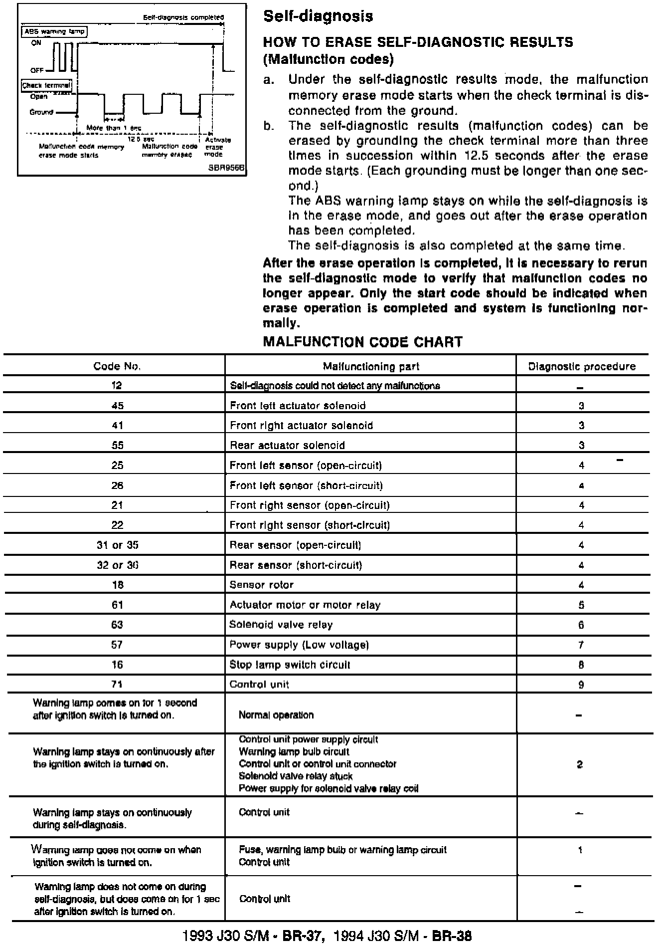 BRAKE SYSTEM TROUBLE DIAGNOSES AMENDMENT FOR 1993-94 J3O SERVICE MANUALS