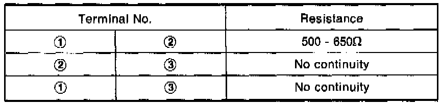 Check resistance between terminals (1), (2) and (3).