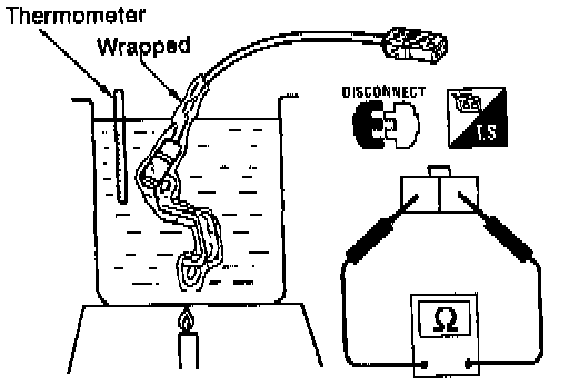 Check resistance between two terminals while changing temperature as shown.