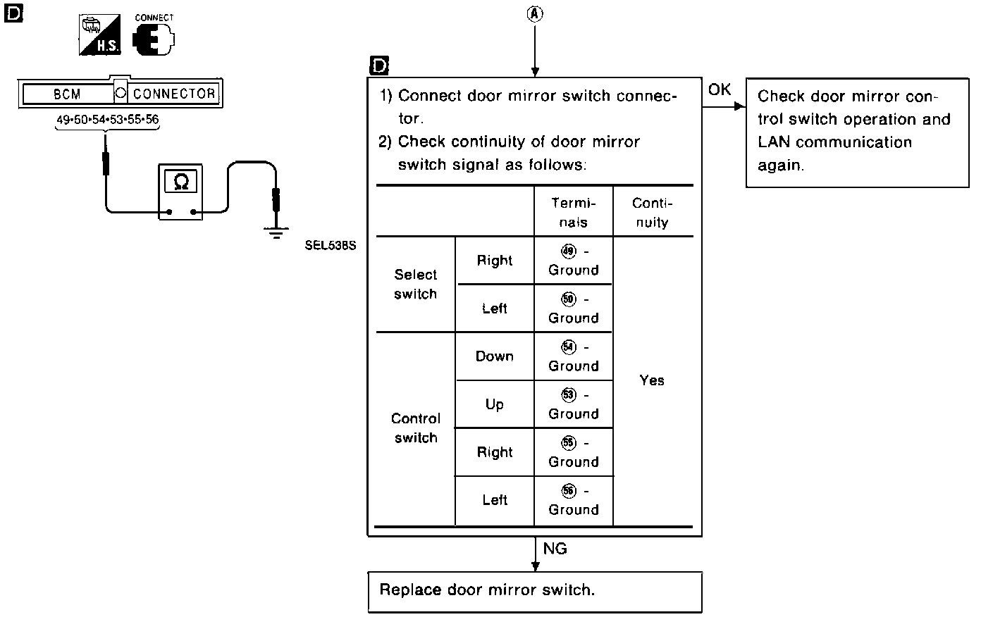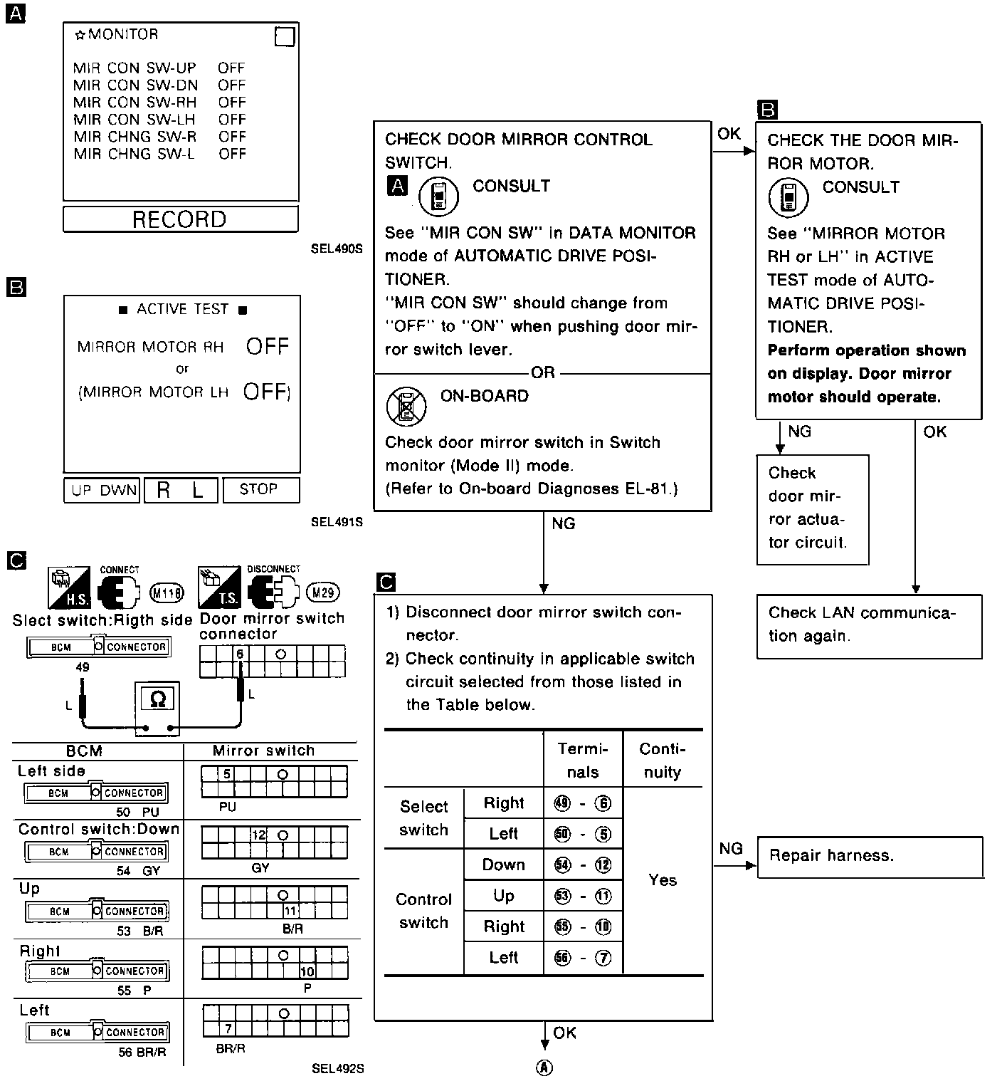 SYMPTOM: Outside door mirror does not operate one or more of the controls with manual remote control switch.