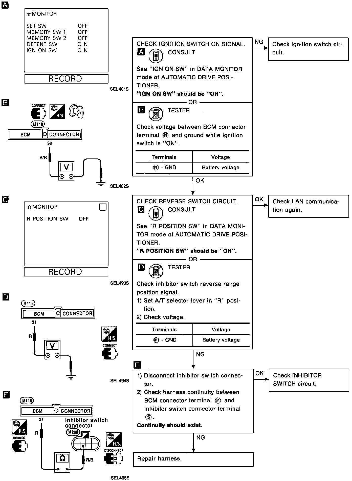 SYMPTOM: Door mirror automatic tilt down reverse system does not operate. (Manual operation is OK)