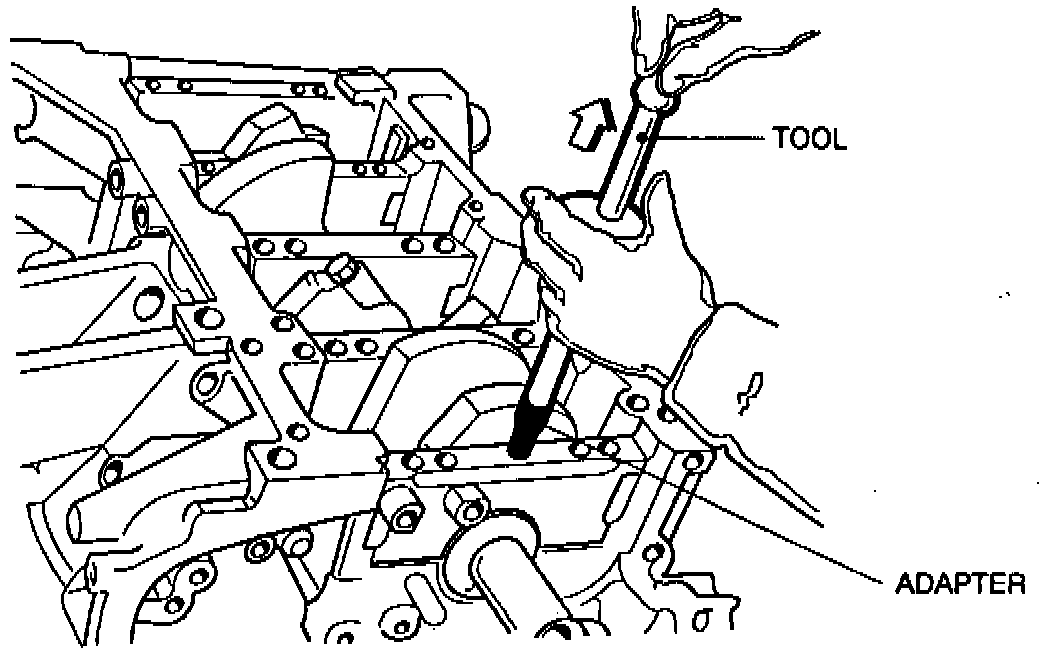 Two special service tools are available to assist in the removal of the main bearing cap in all Q45's. They are J6125-1B Slide Hammer and J38139-1 Slide Hammer Adapter (8 mm x 1.25 pitch). Refer to the illustration for proper usage. Both tools can be ordered from Kent Moore by calling 800-345-2233.