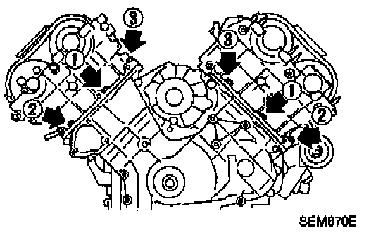 3. Install cylinder heads with new gaskets and temporarily tighten cylinder head bolts for both right and left bank cylinder heads when installing front cover.
