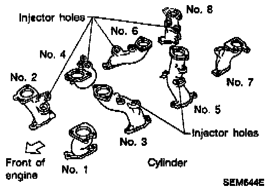 a) Install the eight intake manifolds in their proper positions on cylinder head, and lightly tighten mounting bolts.
