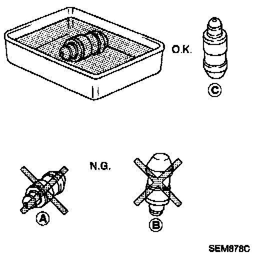 - If hydraulic lash adjuster is kept on its side, there is a risk of air entering it. After removal, always set hydraulic lash adjuster straight up, or when laying it on its side, have it soak in new engine oil.