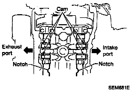 Reference: It is possible to confirm camshaft positions by checking notch positions on the camshaft when No.1 piston is at TDC of the compression stroke. This is the position where cylinder head bolts can be removed.