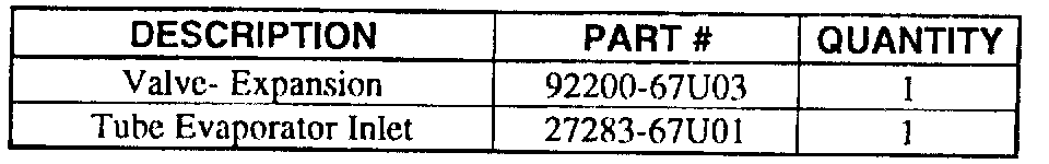3) Check the high side pressure of the compressor (outlet) when the incident is occurring during idle. If the pressure is less than 10 kg/sq.cm (142 psi), replace the thermal expansion valve and the high pressure pipe inside the case with the countermeasure parts listed under Parts Information.