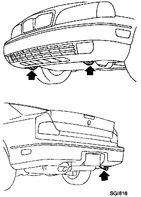 ^ Use the towing hooks only to free a vehicle stuck in sand, snow, mud, etc. Never tow the vehicle using only the towing hooks.