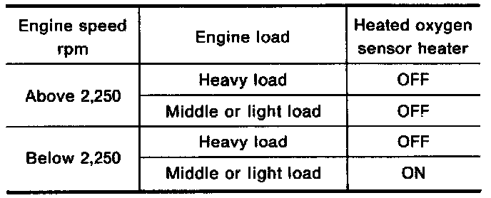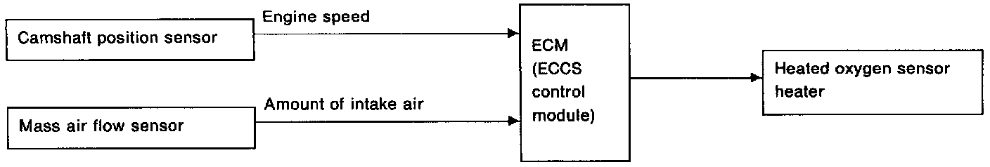 The ECCS Control Module performs the ON/OFF control of the heated oxygen sensor heater corresponding to the engine speed and engine load.