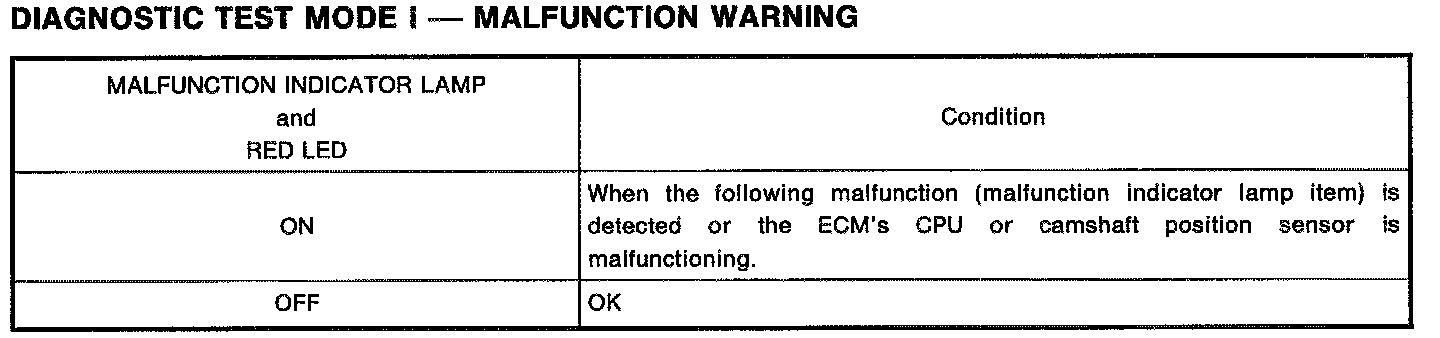 ^ This is the "MALFUNCTION INDICATOR LAMP" self-check. If the lamp does not illuminate in this mode, check the electrical circuit.