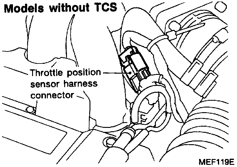 Throttle Position Sensor Harness Connector (Models Without TCS):