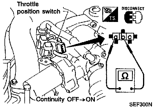 5. Check closed throttle position switch OFF-ON speed with circuit tester, closing throttle valve manually.