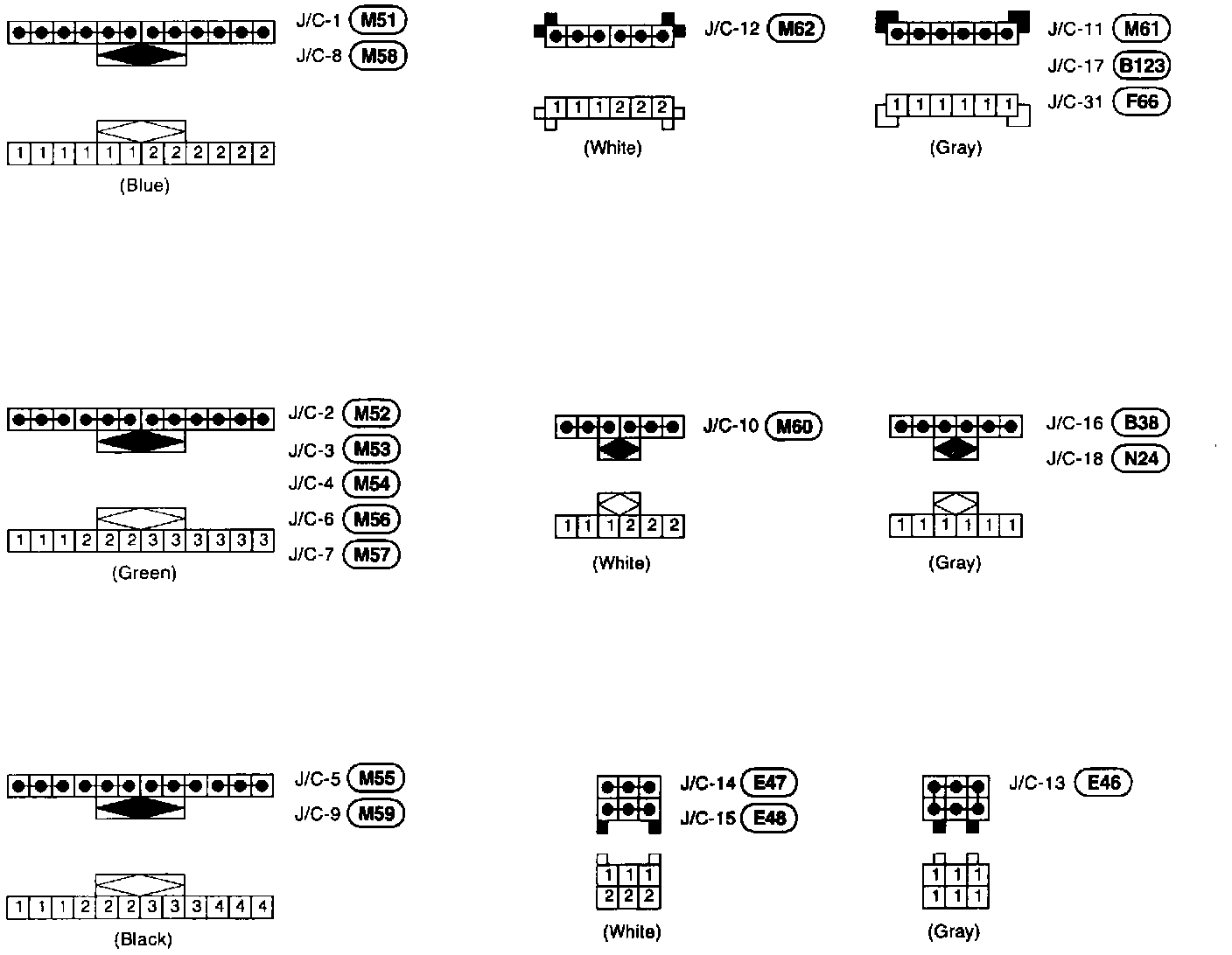 Joint Connector (J/C) Terminal Arrangement: