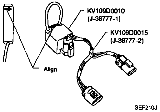 2. Connect SST adapter harness (Kent-Moore #J-36777-2 or equivalent) between ignition coil and engine harness.