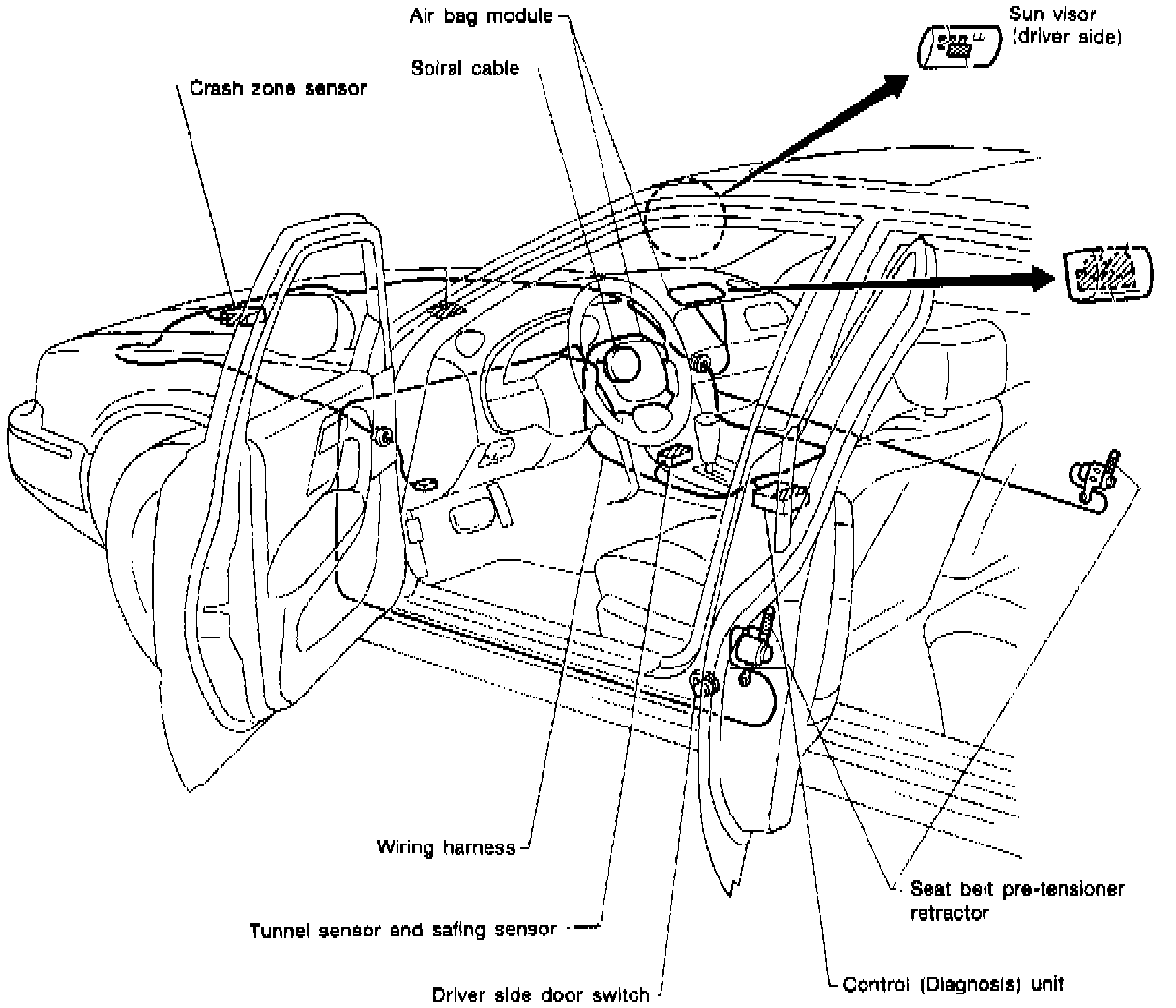 Fig. 7 Supplemental Restraint System (SRS) Component Locations: