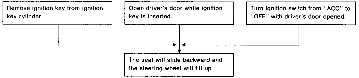 For ease of entry and exit, move driver's seat and steering wheel to "exiting" positions. "Exiting" positions: