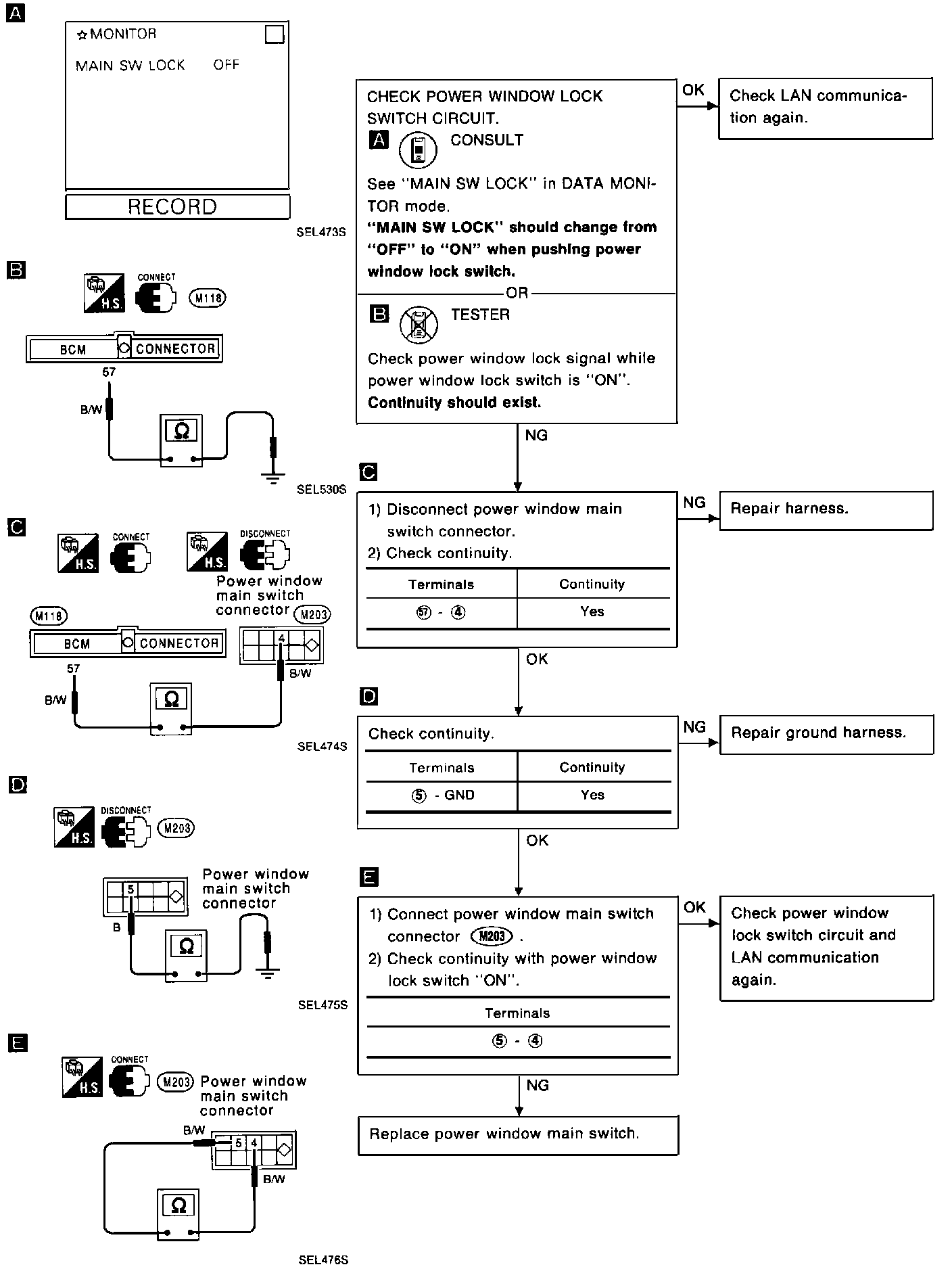 SYMPTOM: Power windows do not lock or unlock using window lock switch on center console.