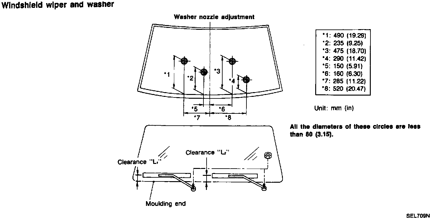 4. Ensure that wiper blades stop within clearance "L1" & "L2".
