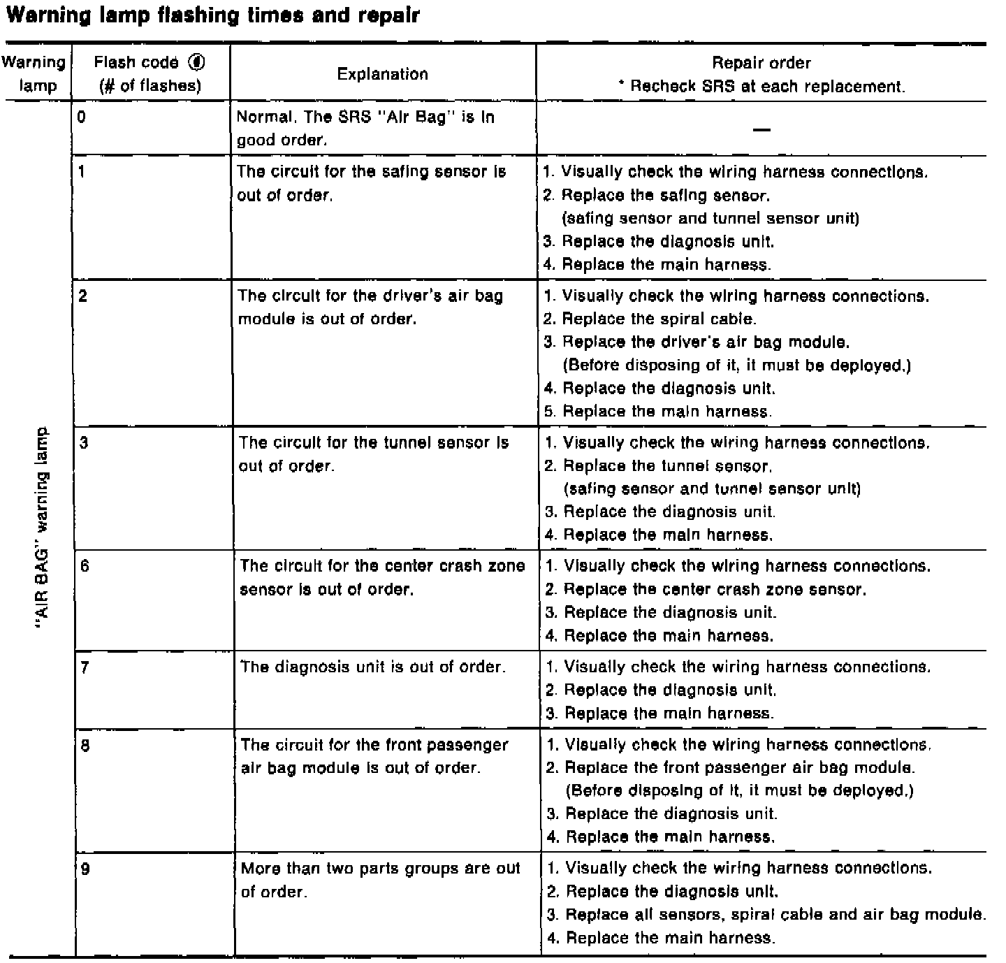 Warning Lamp Flash Code Chart