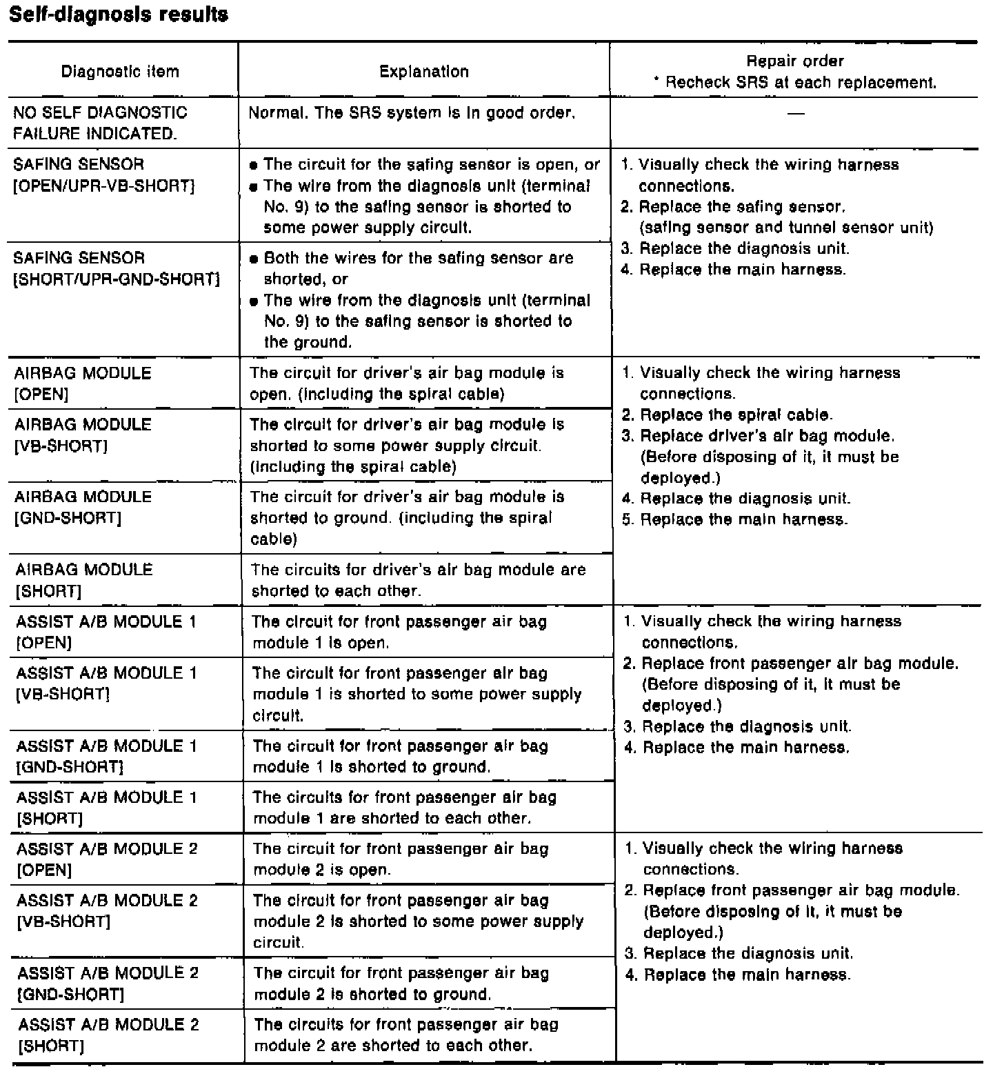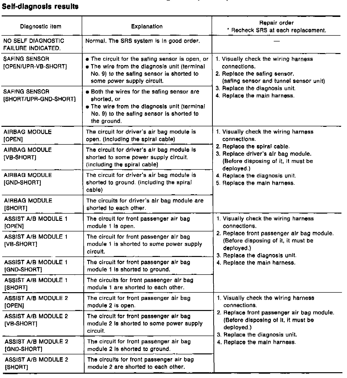 Self Diagnostic Results