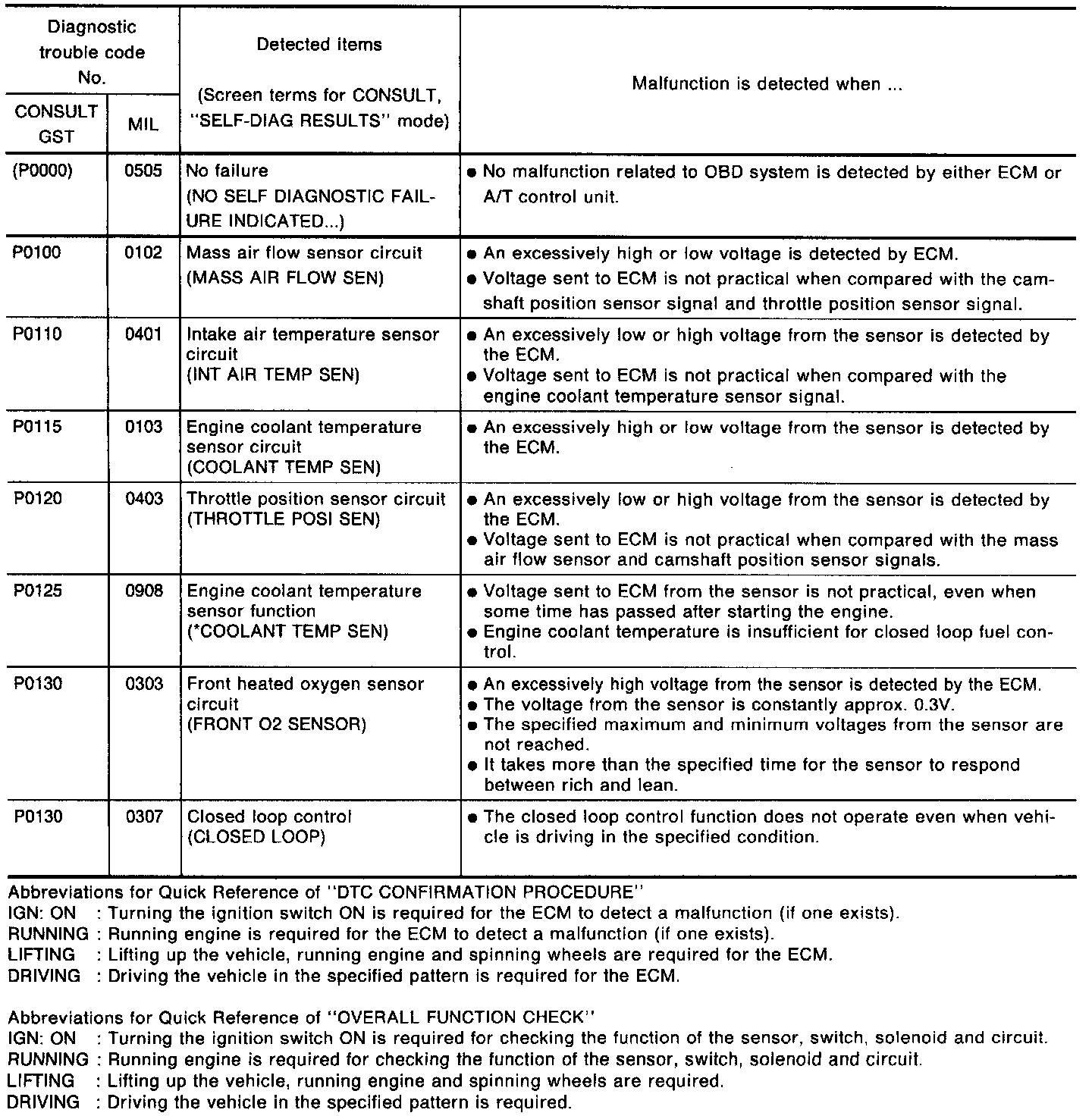 Codes P0000 - P0130