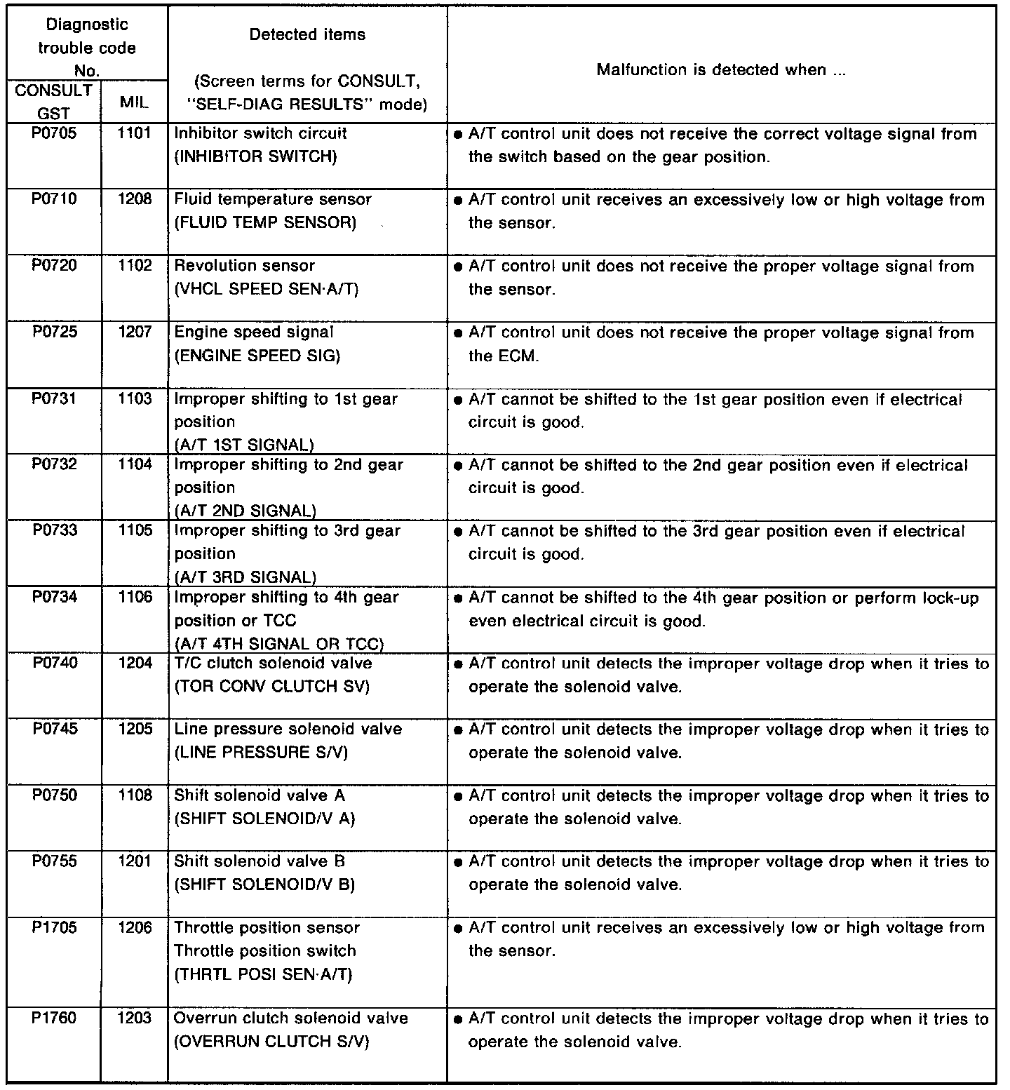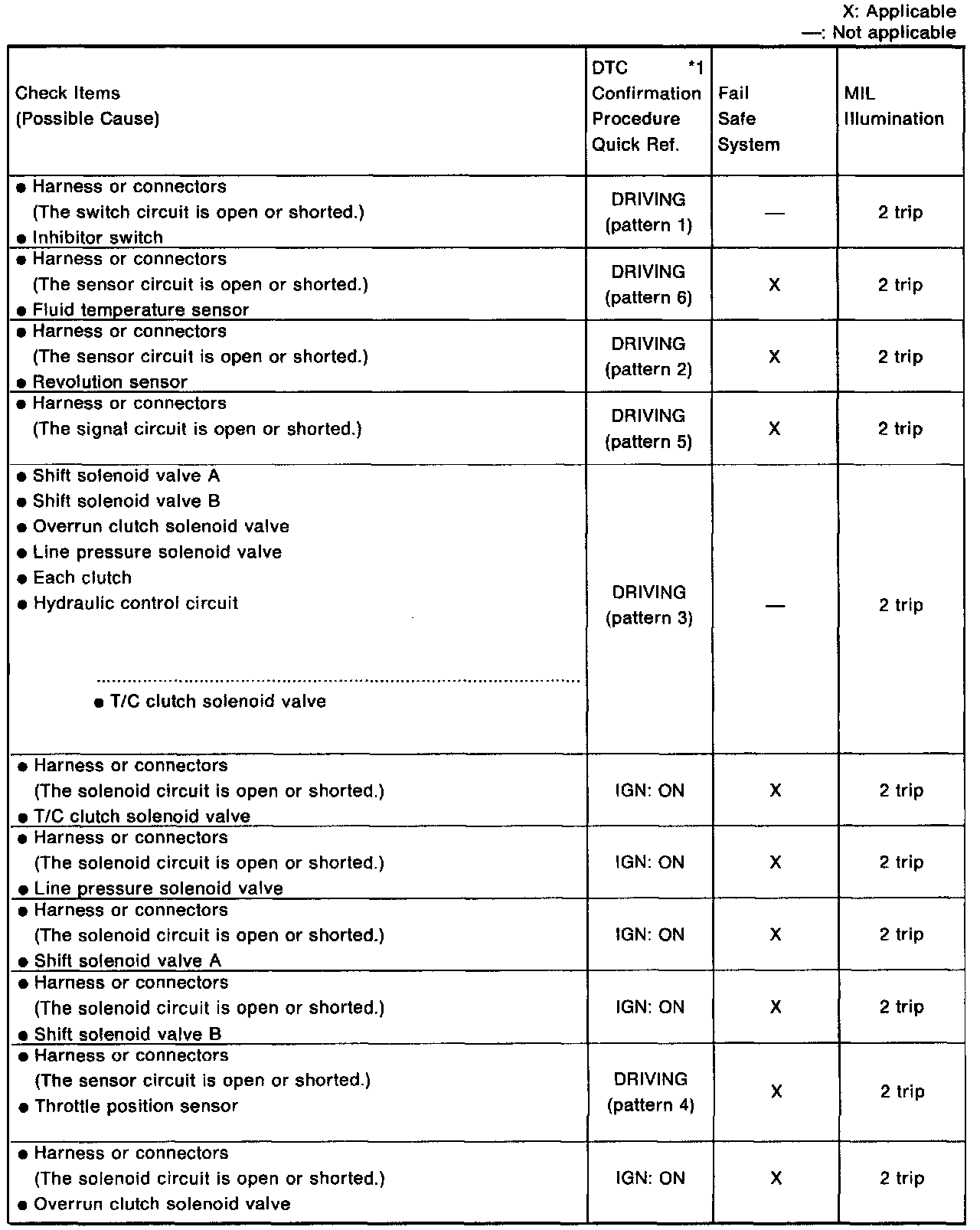 A/T Related Items - Diagnostic Trouble Code Chart (Part 1 Of 2):