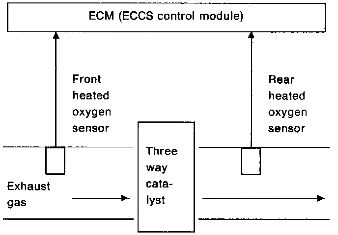 The second stage diagnosis switches the mixture ratio feedback control using front heated oxygen sensor to rear heated oxygen sensor. Then ECM measures the switching lag time between front heated oxygen sensor and rear heated oxygen sensor.