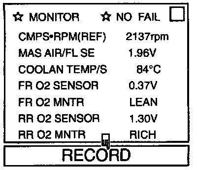 3) Touch "RECORD" on CONSULT screen with engine speed held at 2,000 rpm constant under no load.