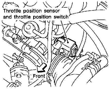 The wide-open position switch sends a signal to the A/T control unit when the throttle valve is open at least 1/2 of the full throttle position. The closed throttle position switch sends a signal to the A/T control unit when the throttle valve is fully closed.