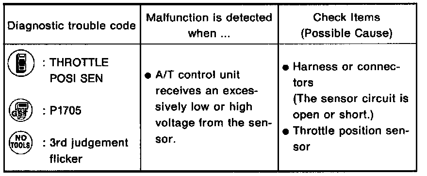 Selector lever in D, vehicle speed higher than 10 km/h (6 MPH), throttle opening greater than 1/2 of the full throttle position and driving for more than 3 seconds.