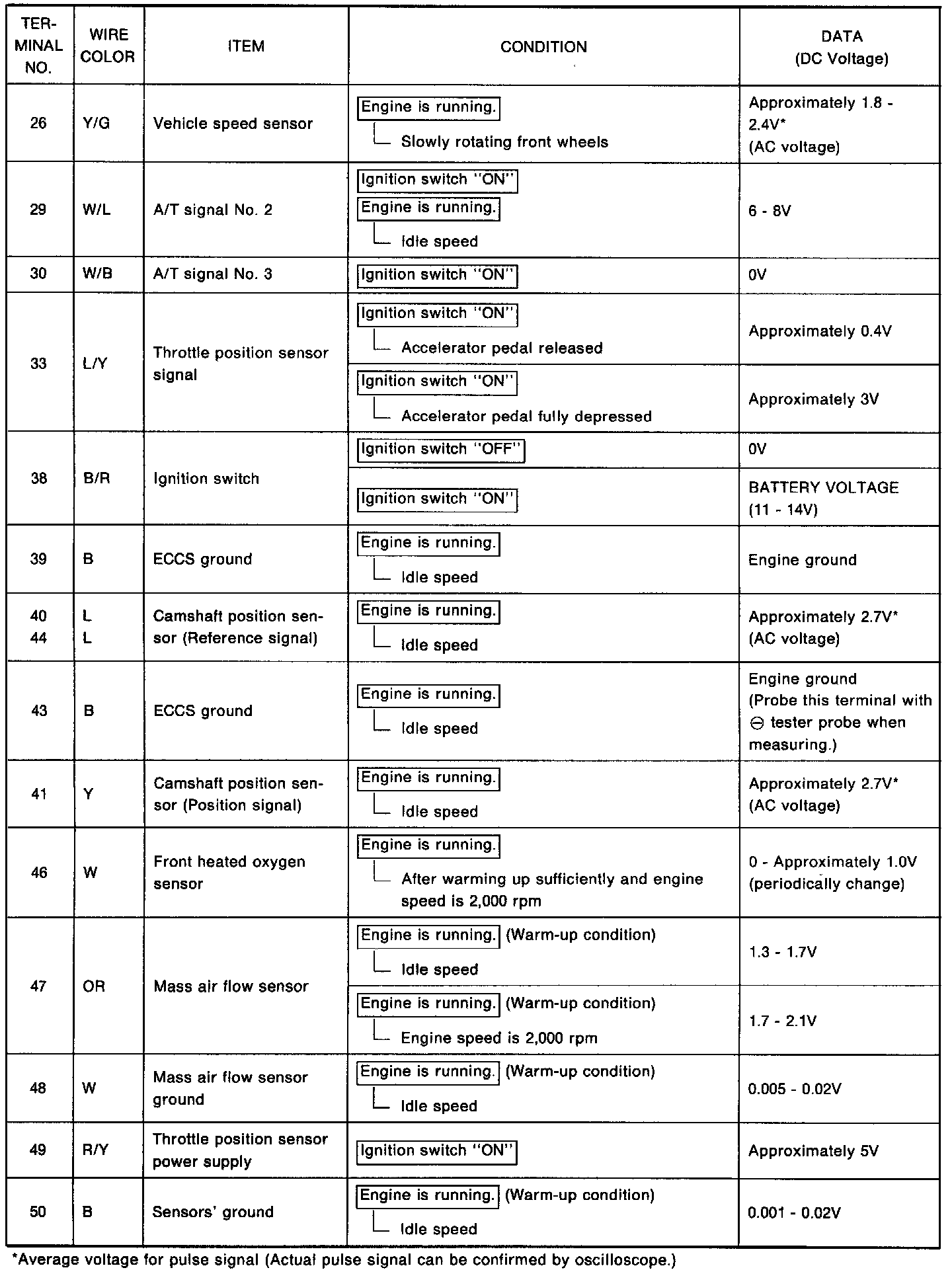 Specification data are reference values and are measured between each terminal and (43) (ECCS ground).