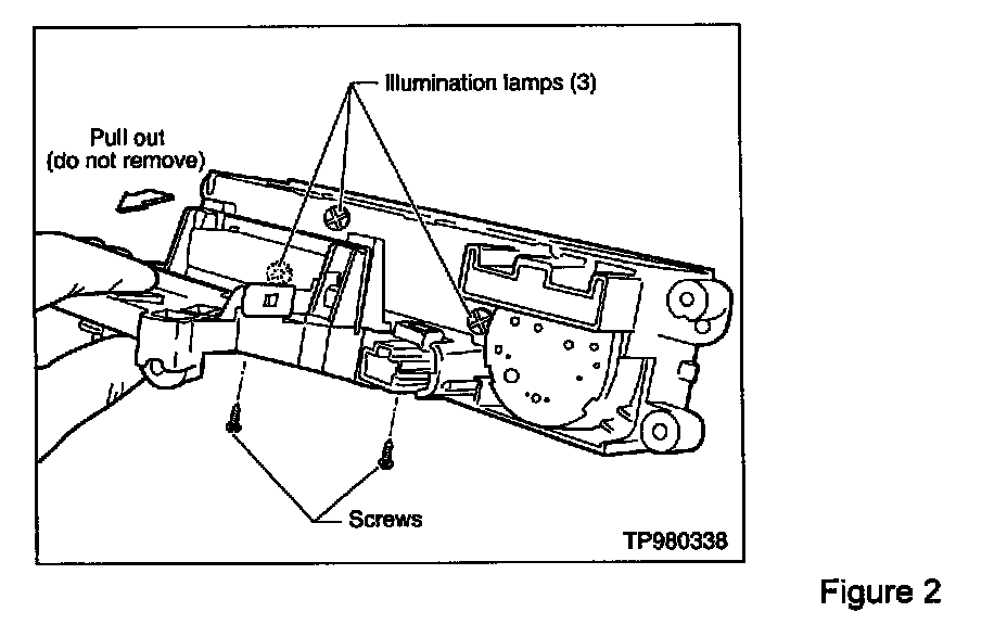 3. Remove the two screws located on the bottom of the assembly and gently slide the rear component away from the body of the control unit enough to expose the three illumination bulbs (see Figure 2).