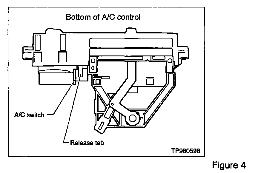 1. Remove the heater & A/C control assembly (refer to pages HA79-HA80 of the 1996 service manual).