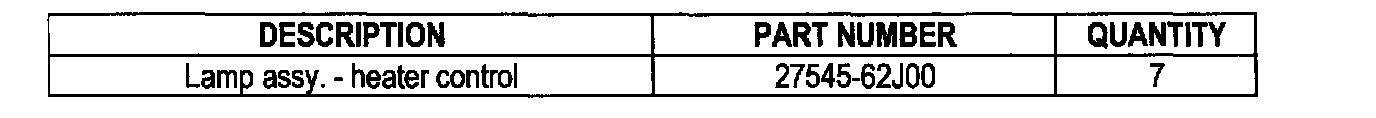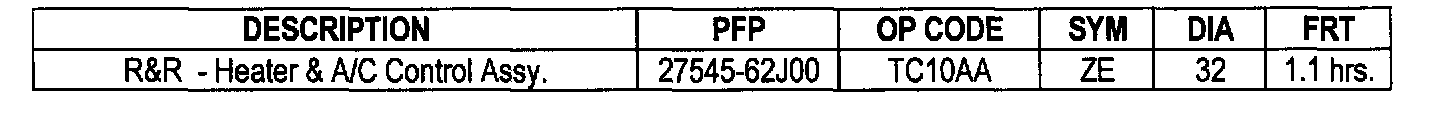 If the heater control assembly on a 1991-96 G20 does not illuminate with the dash lights on, or the bulb in the A/C switch does not light, it is no longer necessary to replace the entire unit. Replacement illumination lamps are now available in the Infiniti Parts System under a separate part number.