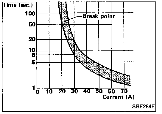For example, when current is 30 A , the circuit is broken within 8 to 20 seconds.
