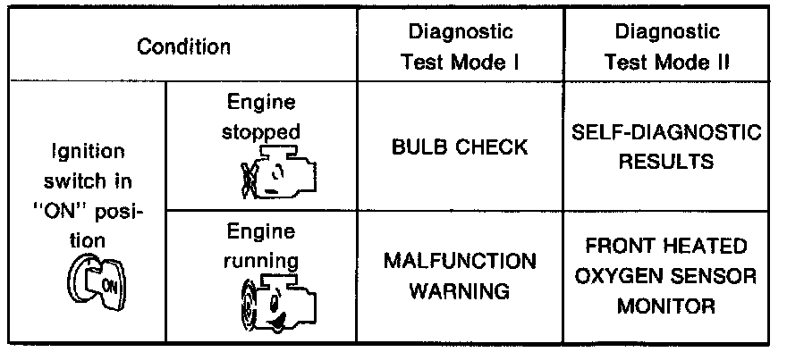 2. MALFUNCTION WARNING: This is a usual driving condition. When a malfunction is detected twice (two trip detection logic), the MIL will light up to inform the driver that a malfunction has been detected.