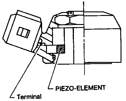 The knock sensor is attached to the cylinder block. It senses engine knocking using a piezoelectric element. A knocking vibration from the cylinder block is sensed as vibrational pressure. This pressure is converted into a voltage signal and sent to the Engine Control Module (ECM).