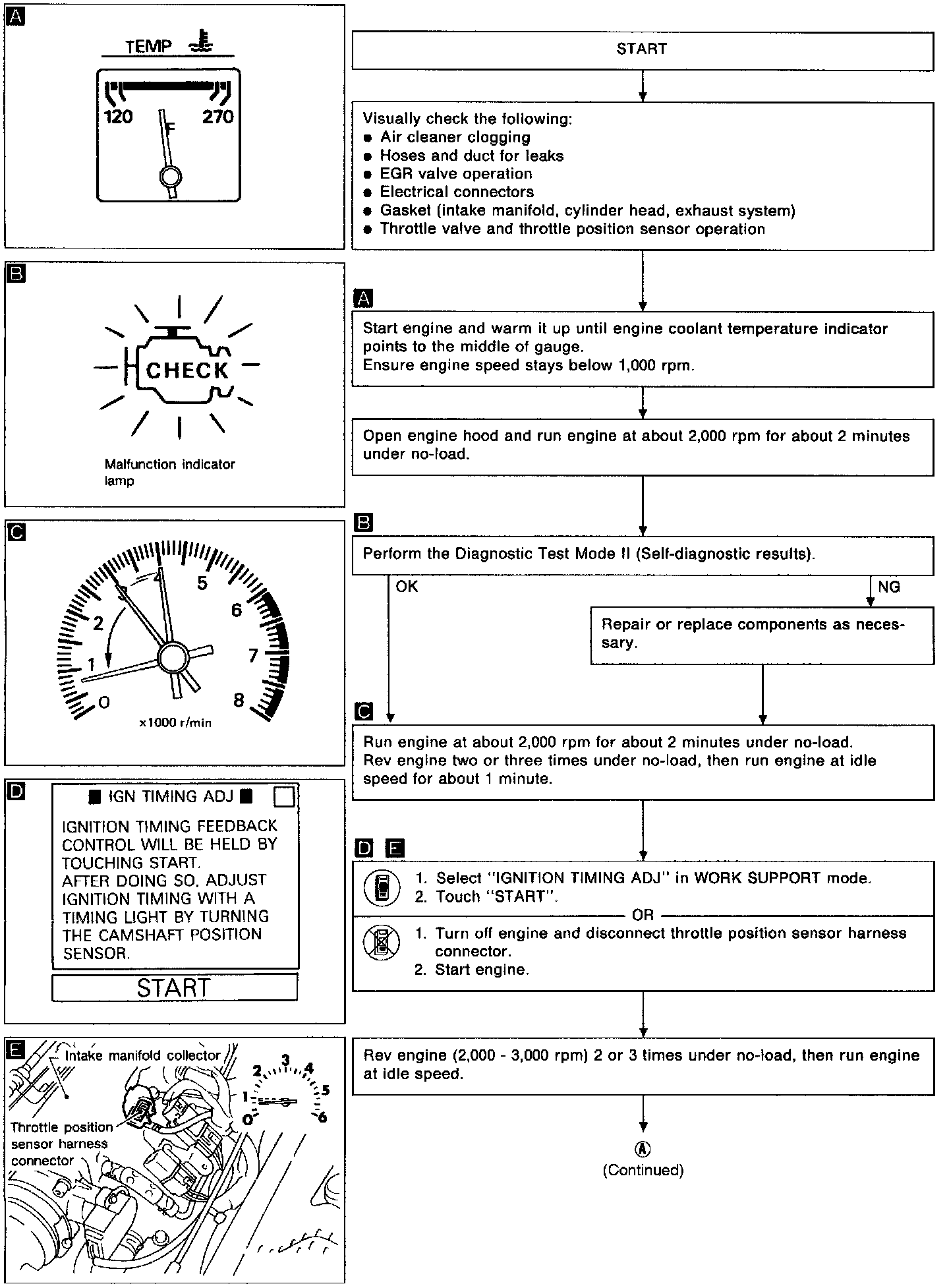 IDLE SPEED/IGNITION TIMING/IDLE MIXTURE RATIO ADJUSTMENTNOTE: Manufacturer requires that idle speed, ignition timing, and idle mixture ratio testing and adjustment procedures be performed together.