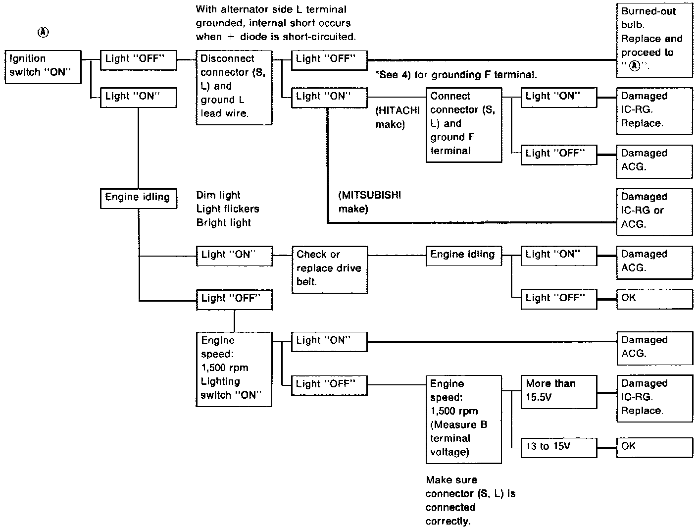 3. When reaching "Damaged ACG", remove generator from vehicle and disassembly, inspect and correct or replace faulty parts.
