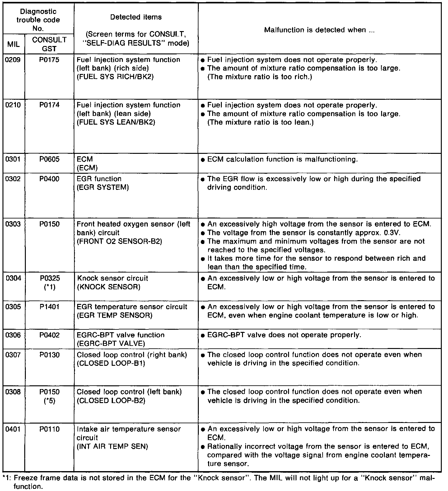 1: Freeze frame data is not stored in the ECM for the "Knock sensor. The MIL will not light up for a "Knock sensor" malfunction.