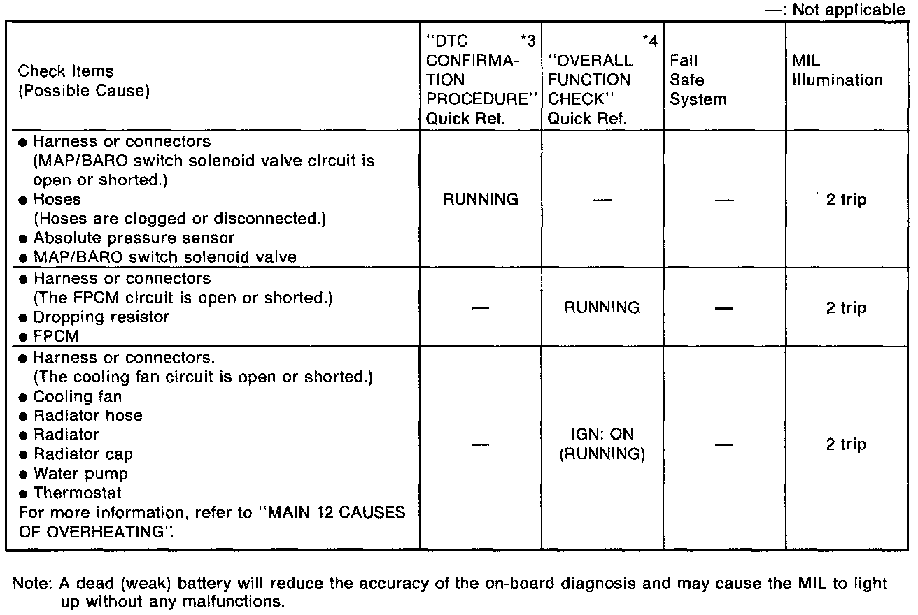 Driving the vehicle in the specified pattern is required for the ECM to detect a malfunction (if one exists). *4: The "OVERALL FUNCTION CHECK" is a simplified and effective way to inspect a component or circuit.